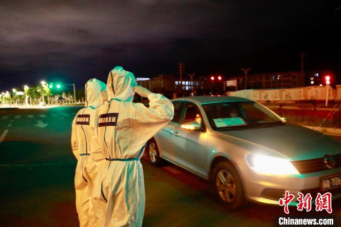 每晚他們要檢查一百多輛往來(lái)的車,沒(méi)有車的時(shí)候他們就在路口反復(fù)踱步,偶爾打開(kāi)面罩呼吸下略帶清涼的空氣,讓自己清醒一些。