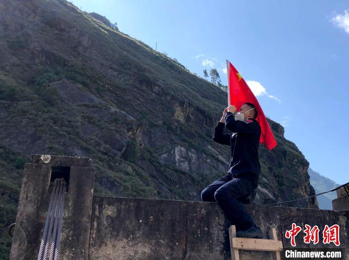 巡邏間隙,移民管理警察攻國(guó)杰在口岸遺址上方更換國(guó)旗。 郭章統(tǒng) 攝