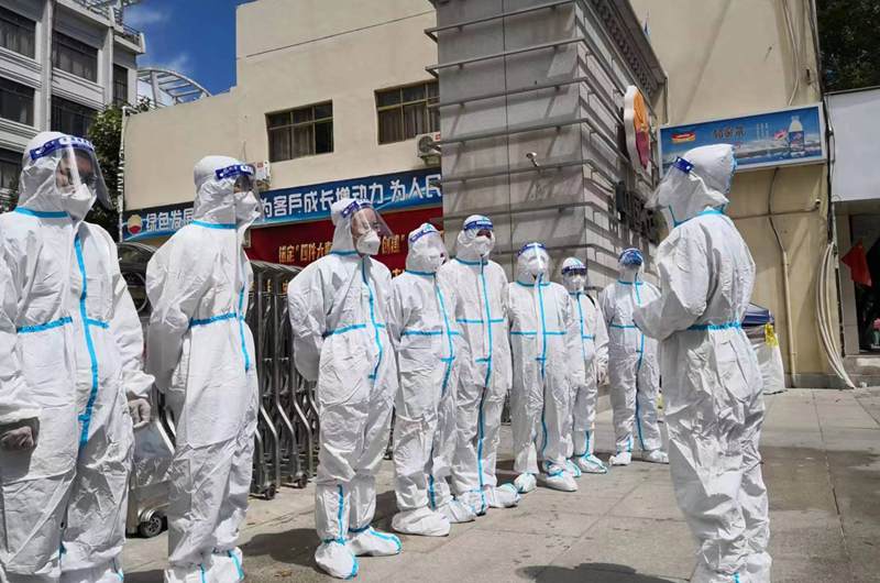 都說男兒有淚不輕彈,臥病在床的老奶奶一句“土基起(藏語:謝謝)”讓隊伍中最年輕志愿者,95后的李韜韜濕潤了眼眶,他說:“奶奶已經(jīng)很可憐了,還對我們說謝謝”;從值班點到休息點近3公里,邊巴索朗把家里一輛摩托車、一輛電動車“充公”方便大家“上下班”;剛結束人民醫(yī)院和拉薩市柳梧新區(qū)園區(qū)倉庫志愿服務工作的李方、李高寒,“無縫銜接”新戰(zhàn)場……一身身白衣服下,是一個個鮮活的生命,因愛而無畏,因信仰而不悔。