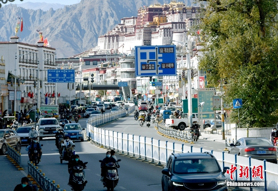 11月17日,拉薩市北京東路車(chē)流人流漸多。近日,在拉薩八廓街道、吉日街道、吉崩崗街道等主城區(qū)及市區(qū)主要路段,車(chē)流量、人流量逐步恢復(fù)。隨著拉薩市新冠肺炎疫情防控形勢(shì)持續(xù)向好,各行各業(yè)有序復(fù)工復(fù)產(chǎn),民眾生活逐步正常,街頭巷尾的“煙火氣”漸濃。 中新社記者 李林 攝