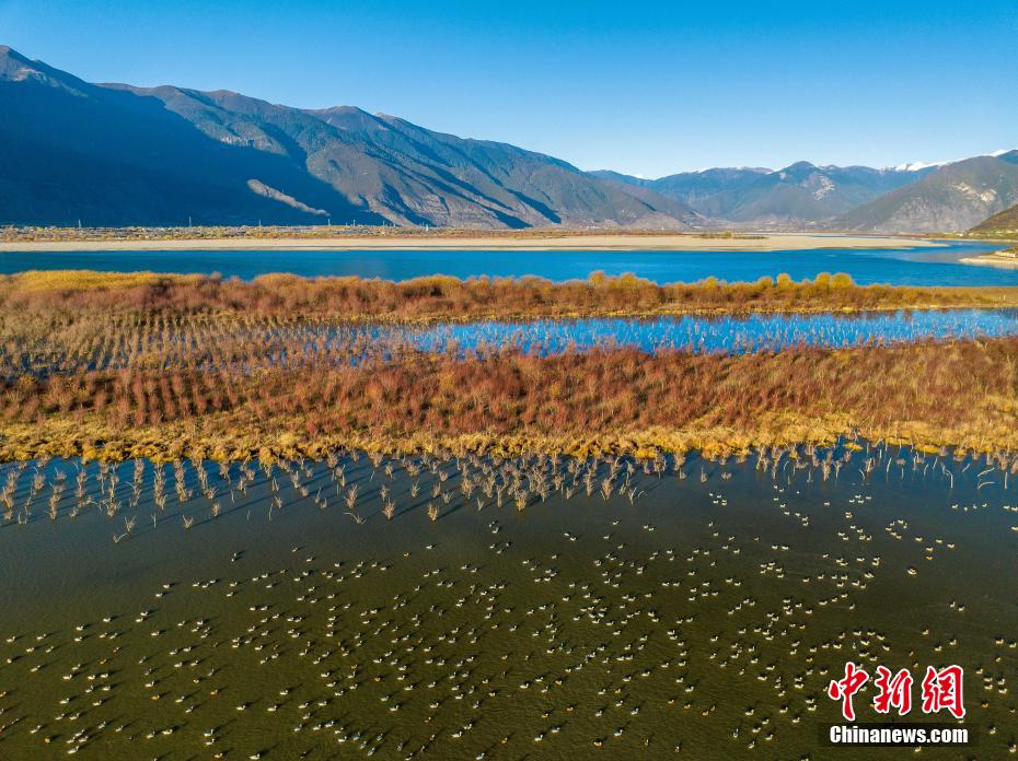 11月19日,西藏林芝雅尼國(guó)家濕地公園內(nèi)成群的斑頭雁。 董志雄 攝