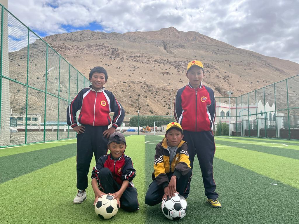 那曲聶榮縣小學(xué)的學(xué)生們正在踢足球(4月20日攝)