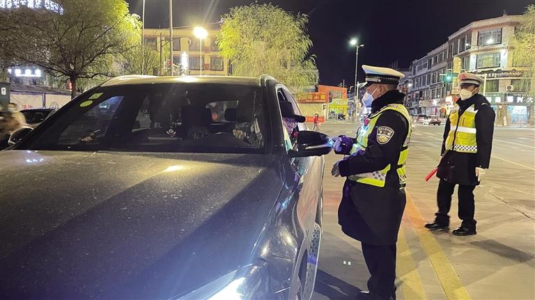拉薩冬日的夜晚寒風(fēng)凜冽。夜色中,一輛輛汽車有序通行,街道又恢復(fù)了往日的熱鬧。當(dāng)天晚上9時(shí)許,記者跟隨拉薩市公安局交警支隊(duì)執(zhí)法監(jiān)督大隊(duì)民警前往江蘇大道,城南大隊(duì)的民警已經(jīng)設(shè)置好路障、標(biāo)牌,正在對過往車輛逐一進(jìn)行詳細(xì)排查。“您好,請出示駕照?!薄澳?,請吹氣?!痹诿窬闹笓]下,車輛有序通過檢查點(diǎn)。市民扎西多吉駕車經(jīng)過檢查點(diǎn)后告訴記者,在這么冷的天氣里,交警依然堅(jiān)守在路面上,確實(shí)令人敬佩,應(yīng)該為他們點(diǎn)贊。“我會牢記‘開車不喝酒,喝酒不開車’,也會自覺遵守交通法律法規(guī),文明出行。”扎西多吉說。