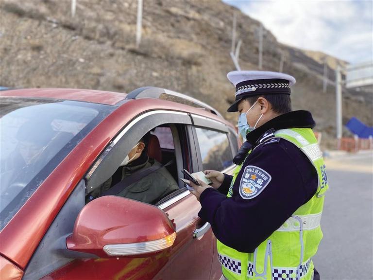 昌都交警對過往車輛進行檢查。圖由昌都交警提供