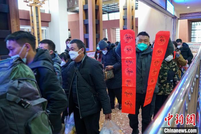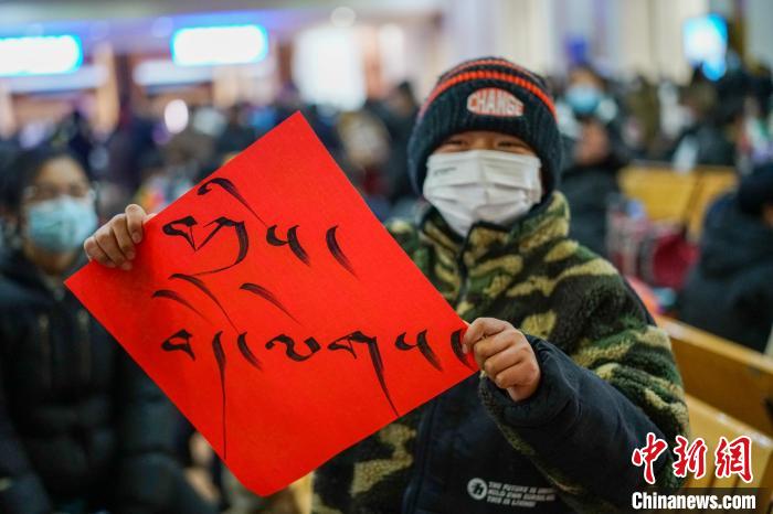 拉薩火車站工作人員介紹, 春運首日,該站預(yù)計發(fā)送旅客4300多人次。在候車廳,車站“天路格?;ā狈?wù)品牌工作人員忙前忙后,幫助旅客出行。此外還有藏漢書法家現(xiàn)場書寫雙語春聯(lián),贈予春運旅客。
