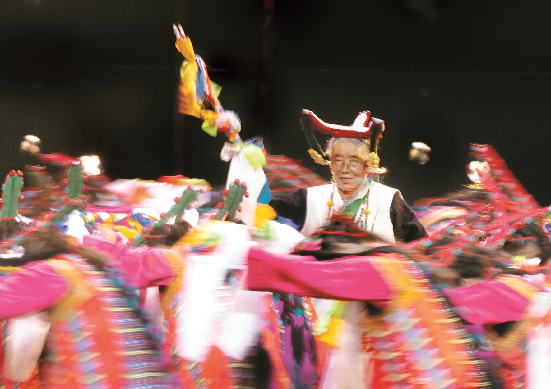 “諧欽”是西藏傳統(tǒng)歌舞節(jié)目,歷史悠久,深受廣大群眾喜愛。編導吳金曲珍介紹說:“這個節(jié)目是根據(jù)熱堆村的一個原生態(tài)舞種改編而成的,里面表現(xiàn)的是豐收的喜悅和對家鄉(xiāng)景色的贊美,節(jié)目中表演的34名演員包括一位老阿媽在內(nèi),都是群眾。”