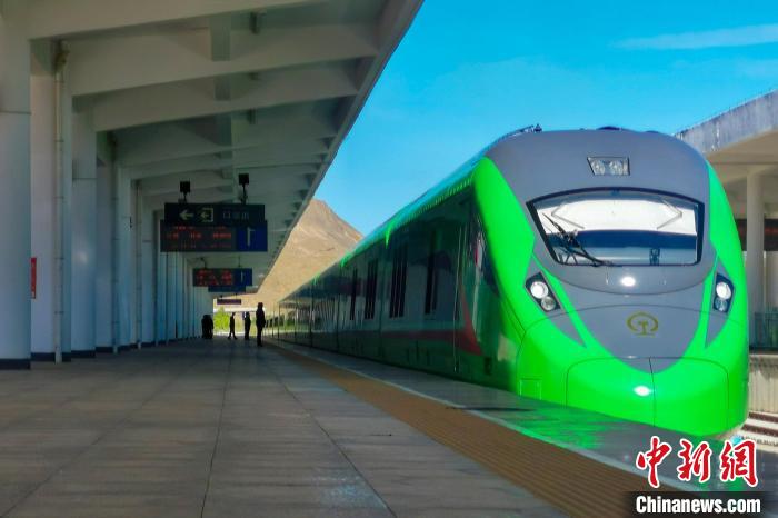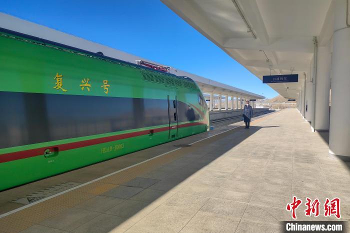 2月21日藏歷新年期間,復(fù)興號(hào)動(dòng)車(chē)組在西藏日喀則站。拉薩車(chē)務(wù)段 供圖