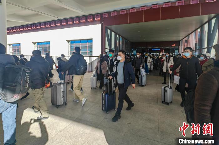 21日上午,旅客在日喀則站乘車(chē)。拉薩車(chē)務(wù)段 供圖