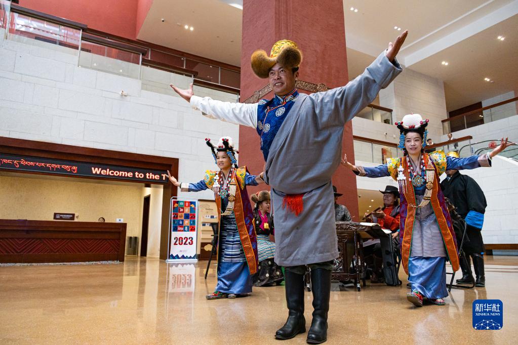 2月22日,在西藏博物館,“堆諧”舞蹈演員向觀眾謝幕。新華社發(fā)(丁增尼達 攝)