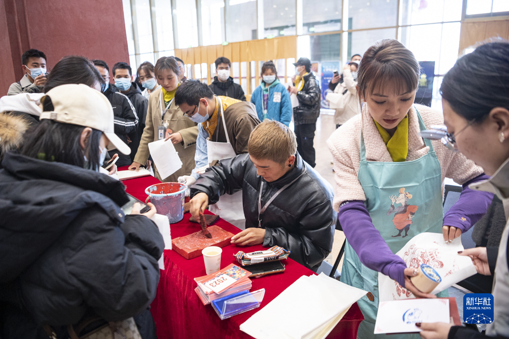 2月22日,西藏博物館工作人員將刻有“扎西德勒”的木刻印刷在紙上。新華社發(fā)(丁增尼達 攝)