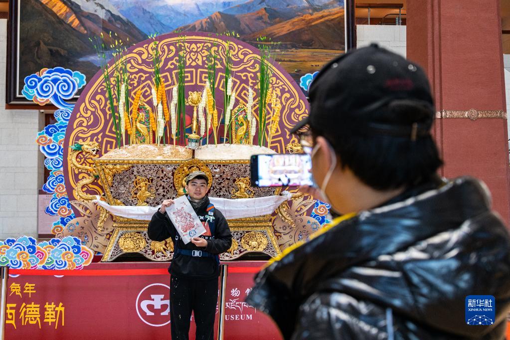 藏歷新年期間,西藏博物館依據(jù)當?shù)靥厣晁?,開展豐富多彩的活動,吸引游客和市民前來體驗。
