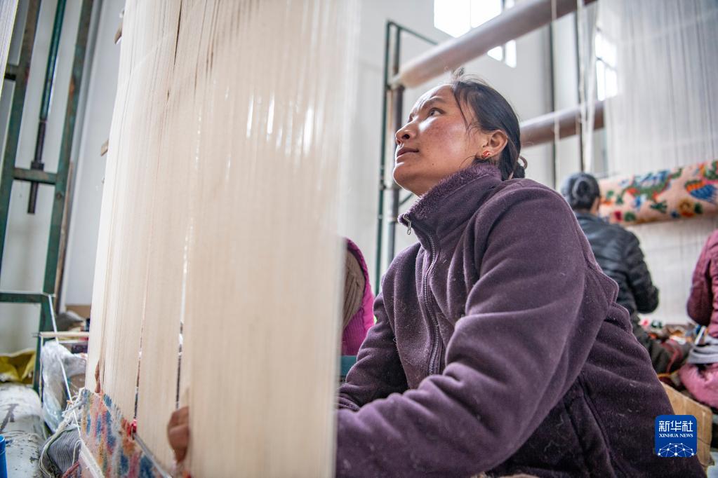 在江孜地毯廠,工人正在編織卡墊(3月19日攝)。新華社記者 孫非 攝