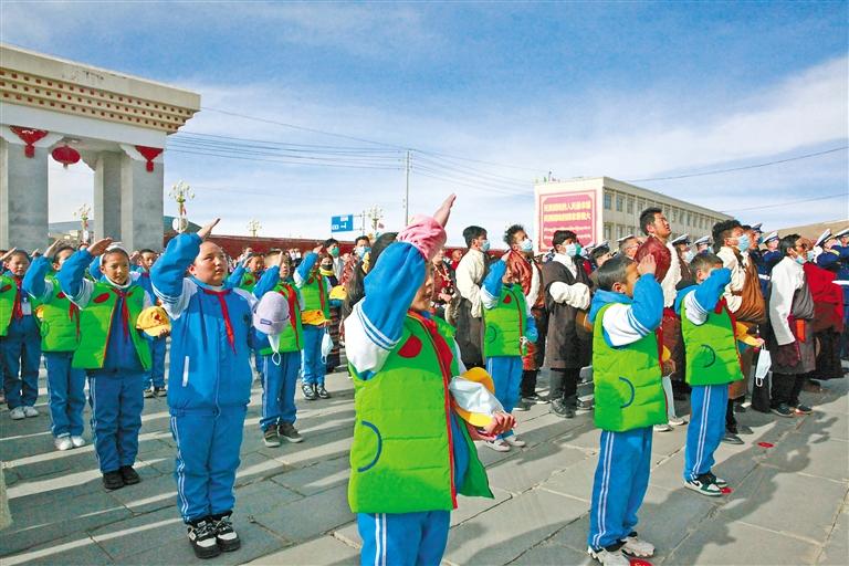 28日,西藏大學(xué)、拉薩市教育局組織學(xué)生開(kāi)展“升國(guó)旗、唱國(guó)歌”活動(dòng),并觀看《復(fù)興之路》和《人格的力量——中國(guó)共產(chǎn)黨人的家國(guó)情懷》兩個(gè)直播課堂,革命先烈為實(shí)現(xiàn)國(guó)家解放和民族復(fù)興前仆后繼、視死如歸的英雄事跡深深打動(dòng)了每一名學(xué)生。西藏大學(xué)學(xué)生向秋雨說(shuō):“我們要以史為鑒,開(kāi)創(chuàng)未來(lái),扎實(shí)學(xué)好專業(yè)知識(shí),維護(hù)祖國(guó)統(tǒng)一,鑄牢中華民族共同體意識(shí),讓青春之花在祖國(guó)最需要的地方絢麗綻放。”