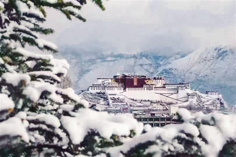 3月28日清晨,拉薩市區(qū)迎來一場降雪。近處的綠柳、紅花、一池春水,遠處的布達拉宮,白雪掩映下的拉薩更顯古樸厚重。雪簌簌地落在屋檐、路面、樹干、花枝上,側(cè)耳傾聽,正是雪落下的聲音。