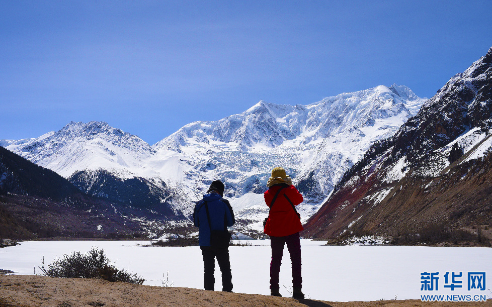 游客在米堆冰川觀景臺附近拍攝(3月25日攝)。 新華網(wǎng) 達(dá)次 攝