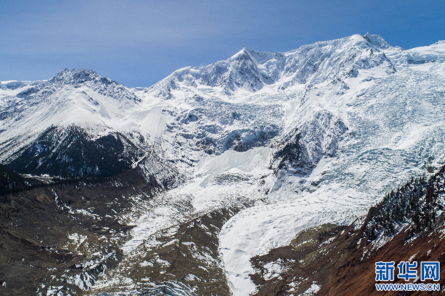 這是3月25日拍攝的米堆冰川(無人機(jī)照片)。新華網(wǎng) 旦增努布 攝