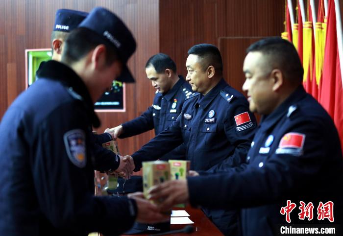 3月31日,授予驗(yàn)訖章的移民管理警察與領(lǐng)導(dǎo)合影?!⌒じ毁F 攝