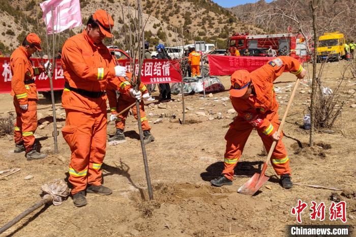 4月7日,西藏自治區(qū)森林消防總隊(duì)昌都市左貢縣中隊(duì)“火焰藍(lán)”志愿服務(wù)隊(duì)積極響應(yīng)號(hào)召,參加左貢縣2023年度義務(wù)植樹(shù)活動(dòng),為高原添新綠。