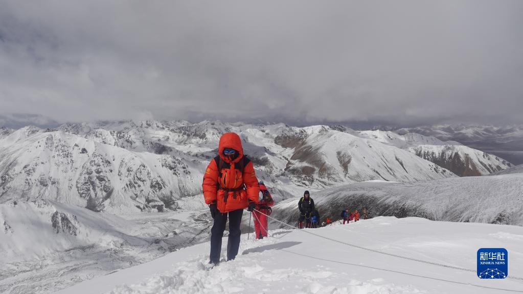 5月3日,登山愛好者正在向海拔6010米的洛堆峰峰頂進發(fā)。新華社記者 黃耀漫 攝