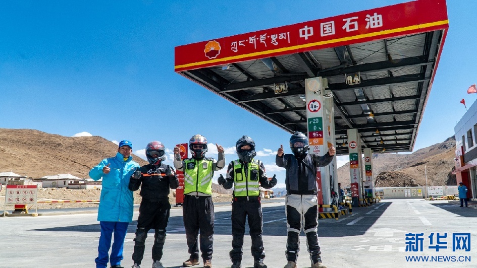 邊巴頓珠正在為游客的摩托車加油(5月16日攝) 。新華網(wǎng)發(fā) 洛桑旺堆 攝