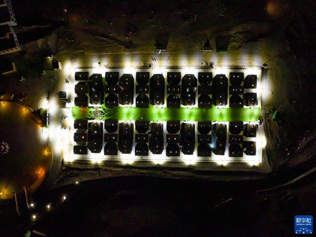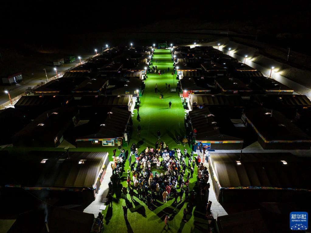 這是夜晚的珠峰游客大本營帳篷旅館(5月16日攝,無人機照片)。新華社記者 孫非 攝