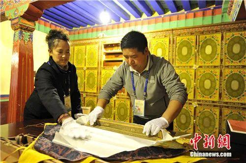二是各類文物古籍得到保護(hù)和利用。西藏?fù)碛胸S富的歷史文物資源,截至2022年底,全區(qū)已調(diào)查登記各類文物點(diǎn)4468處,各級文物保護(hù)單位2373處,可移動(dòng)文物達(dá)51萬件。國家在西藏大力實(shí)施重大文物保護(hù)項(xiàng)目,繼1972年維修大昭寺之后,持續(xù)投入巨額資金對布達(dá)拉宮、羅布林卡、大昭寺等文物古跡進(jìn)行維修保護(hù),僅1989年至1995年,國家就投入2億多元(人民幣,下同)對布達(dá)拉宮進(jìn)行維修及廣場擴(kuò)建。中共十八大以來,中央財(cái)政累計(jì)向西藏投入資金17.16億元、實(shí)施131個(gè)文物本體保護(hù)維修項(xiàng)目,西藏自治區(qū)財(cái)政投入資金4億元、實(shí)施86個(gè)文物本體保護(hù)維修項(xiàng)目。2018年底,西藏啟動(dòng)了周期10年、投資3億元的布達(dá)拉宮文物(古籍文獻(xiàn))保護(hù)利用項(xiàng)目,目前已經(jīng)完成一期項(xiàng)目的驗(yàn)收。