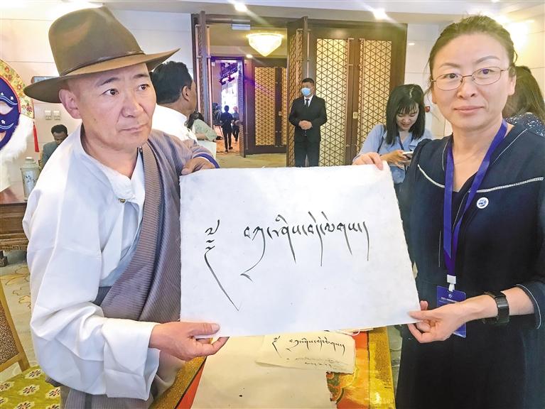 論壇會上,鋪開獨特的藏紙,手持光潤的竹筆,48歲的藏文書法家扎西頓珠鄭重寫下“扎西德勒”四個字,贈予前來參會的中外嘉賓。作為國家級非物質(zhì)文化遺產(chǎn)代表性項目藏文書法(尼赤)的代表性傳承人,扎西頓珠希望讓更多人感受并了解西藏傳統(tǒng)書法之美?!斑@次論壇期間,我先后向中外嘉賓送上了300多幅書法作品,我們藏族傳統(tǒng)文化能被全世界看見并受到喜愛,推動各民族交往交流交融,感到非常開心和自豪?!眲倧谋本┗貋聿痪?,閑不住的扎西頓珠又在準(zhǔn)備參加藏博會的書法作品,傳播藏文書法文化。
