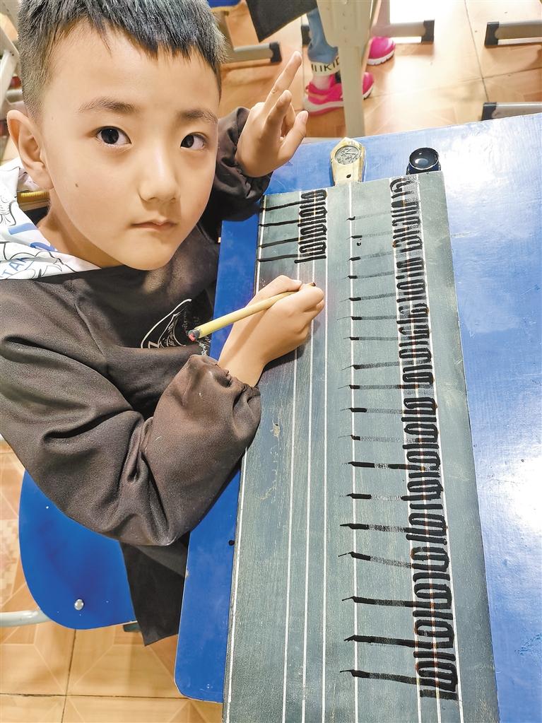 今年10歲的扎西次仁和他的同學(xué)們席地端坐,左手握木制藏文書寫板,右手持竹筆,一起認(rèn)真練習(xí)尼赤派書法。扎西頓珠平時利用閑暇時間在家免費教授書法?!昂⒆幽茉趪壹壏沁z傳承人門下學(xué)習(xí)藏文書法,機會難得,我們?nèi)胰朔浅VС?,也非常榮幸。孩子也學(xué)得非常認(rèn)真?!笔忻窭纺弥鴥鹤觿倢懞玫臅ㄗ髌犯锌?。