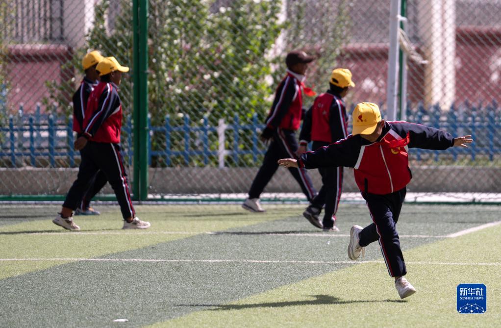 6月5日,扎西宗鄉(xiāng)完全小學(xué)的學(xué)生在上體育課。新華社記者 費(fèi)茂華 攝