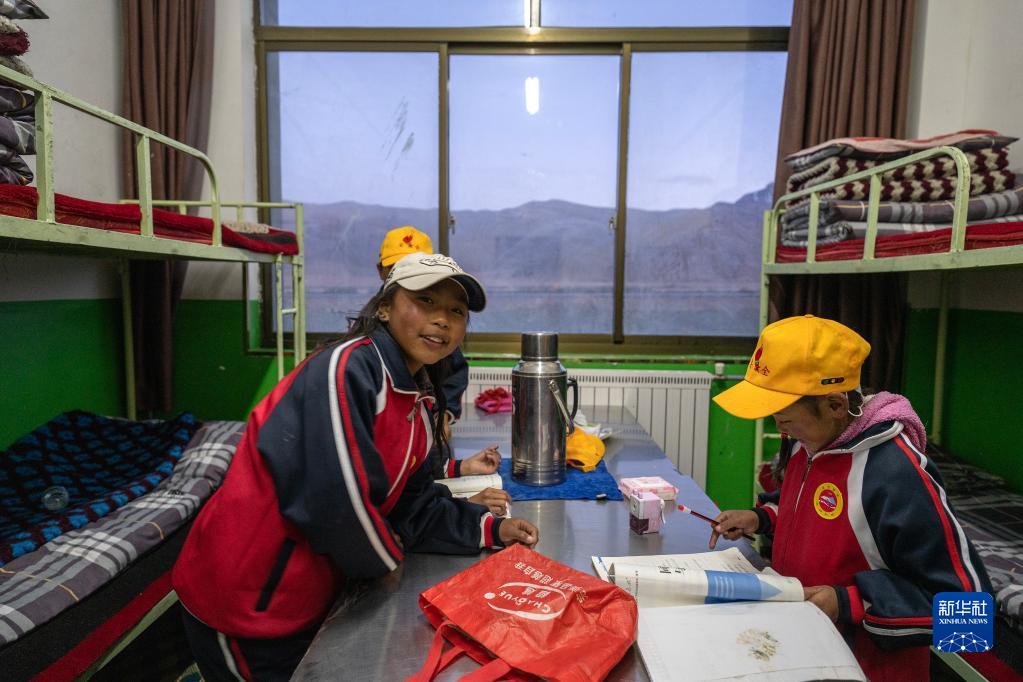 6月5日,扎西宗鄉(xiāng)完全小學(xué)的學(xué)生在宿舍學(xué)習(xí)。新華社記者 費(fèi)茂華 攝