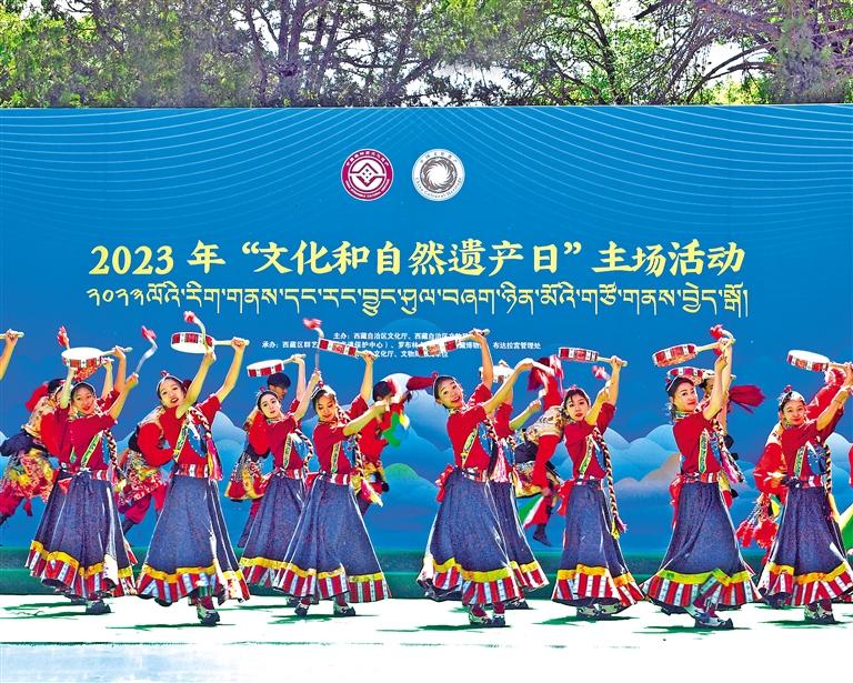 圖為西藏2023年“文化和自然遺產(chǎn)日”主場(chǎng)活動(dòng)現(xiàn)場(chǎng),西藏大學(xué)藝術(shù)學(xué)院帶來的舞蹈《東洛熱巴》。記者 旦增蘭澤 攝