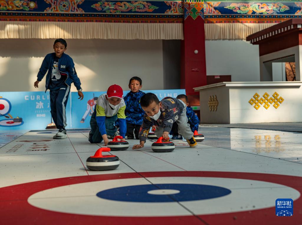 6月17日,幾名孩子在第五屆藏博會現(xiàn)場體驗冰壺。新華社記者 張汝鋒 攝