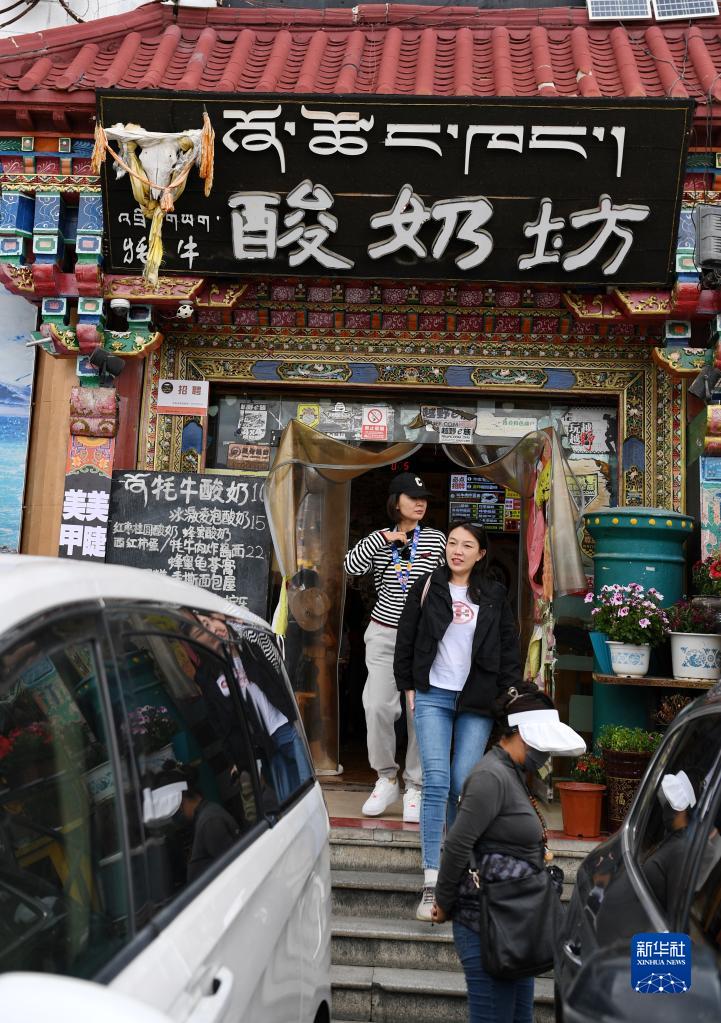 這是布達(dá)拉宮附近的一家備受游客歡迎的酸奶坊(6月16日攝)。新華社記者 張汝鋒 攝