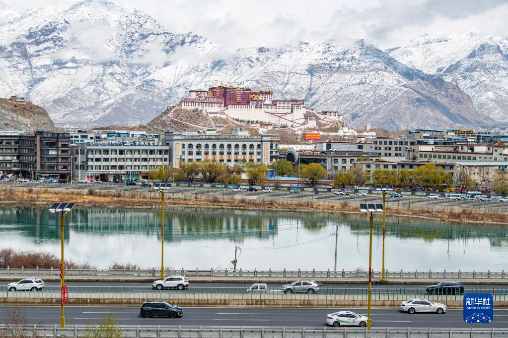 這是拉薩市的南環(huán)路(3月30日攝,無(wú)人機(jī)照片)。新華社記者 孫非 攝