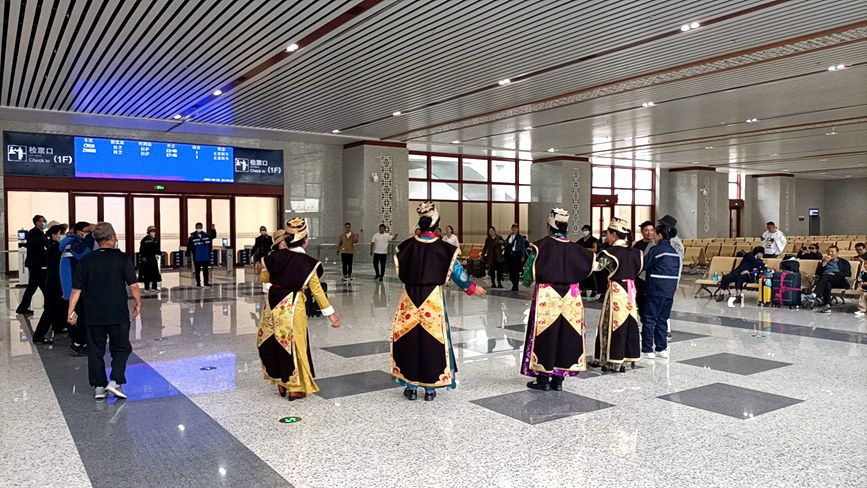 2023年6月25日,拉薩火車站、林芝火車站內(nèi)異常熱鬧。在拉薩火車站,準(zhǔn)備乘坐C925次旅客列車前往林芝的旅客和車站“天路格?;ā狈?wù)隊(duì)的工作人員一起開展著競(jìng)答互動(dòng)小游戲,復(fù)興號(hào)列車紀(jì)念筆,車站卓瑪工作室卡通形象鑰匙扣、旅行雜志等小禮品受到旅客喜愛。在林芝火車站,工作人員和旅客跳起了熱情的鍋莊,他們用高原獨(dú)有的方式,慶祝拉林鐵路開通兩周年這個(gè)美好的日子。