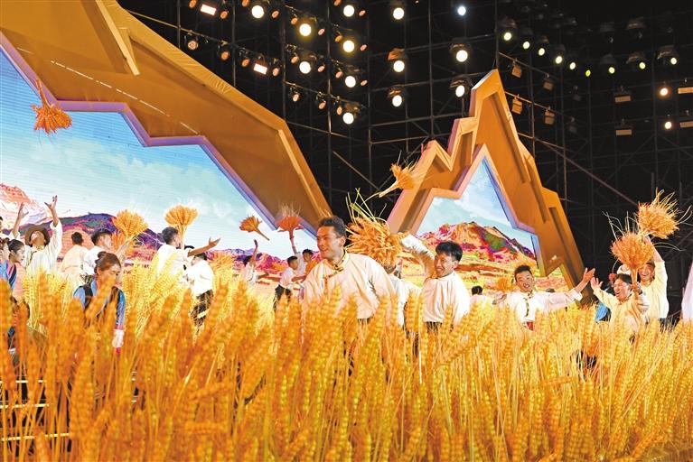 聲,是情的流露;舞,是意的表達。開幕式文藝表演由序《珠峰頌歌》、上篇《戀上青稞》、下篇《極境暢想》和尾聲《吉祥日喀則》組成。序《珠峰頌歌》中,150名演員深情合唱歌曲《珠穆朗瑪》,表演節(jié)奏歡快的男女踢踏舞等,展現日喀則高質量發(fā)展的加速度和拼搏奮進的精氣神。上篇《戀上青稞》,展示日喀則各族群眾勤勞、樂觀、向上的精神風貌和獨具魅力的地域文化。下篇《極境暢想》,以青稞美酒作為表現載體,以游客的視角介紹日喀則文旅資源,并通過藏戲和昆曲等多種文化藝術碰撞,展示日喀則在打造面向南亞大通道的發(fā)展機遇中,廣泛開展對外開放交流合作。尾聲《吉祥日喀則》,展示日喀則海納百川、開放包容的胸襟和熱情。