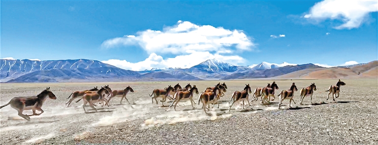 圖為在羌塘國家級(jí)自然保護(hù)區(qū)內(nèi)奔跑的藏野驢。邊巴多吉 攝