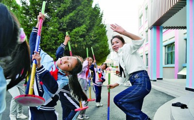 山南市第三小學的援藏教師甘夭娥帶領學生練習藏族傳統(tǒng)舞蹈“打阿嘎”。作為教育大省,湖南通過實施“山南湖南學校聯(lián)盟”工程,采取“一所學校包一個學科”的形式,把優(yōu)質(zhì)教育資源下沉到縣區(qū)和鄉(xiāng)村學校。攝影:辜鵬博(湖南日報攝影記者)
