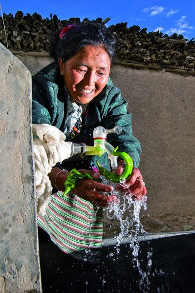 山南市隆子縣隆子鎮(zhèn)葉巴村村民查斯卓瑪用自來水清洗辣椒。攝影:辜鵬博(湖南日報攝影記者)