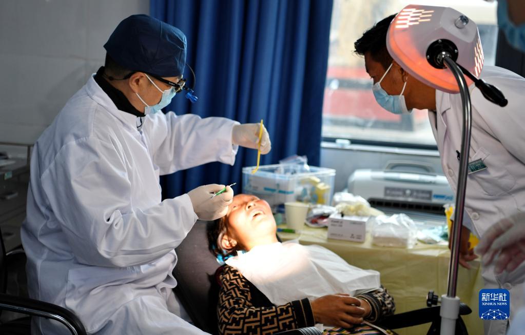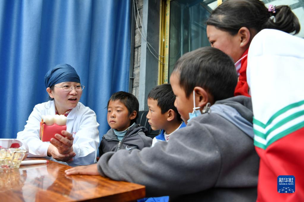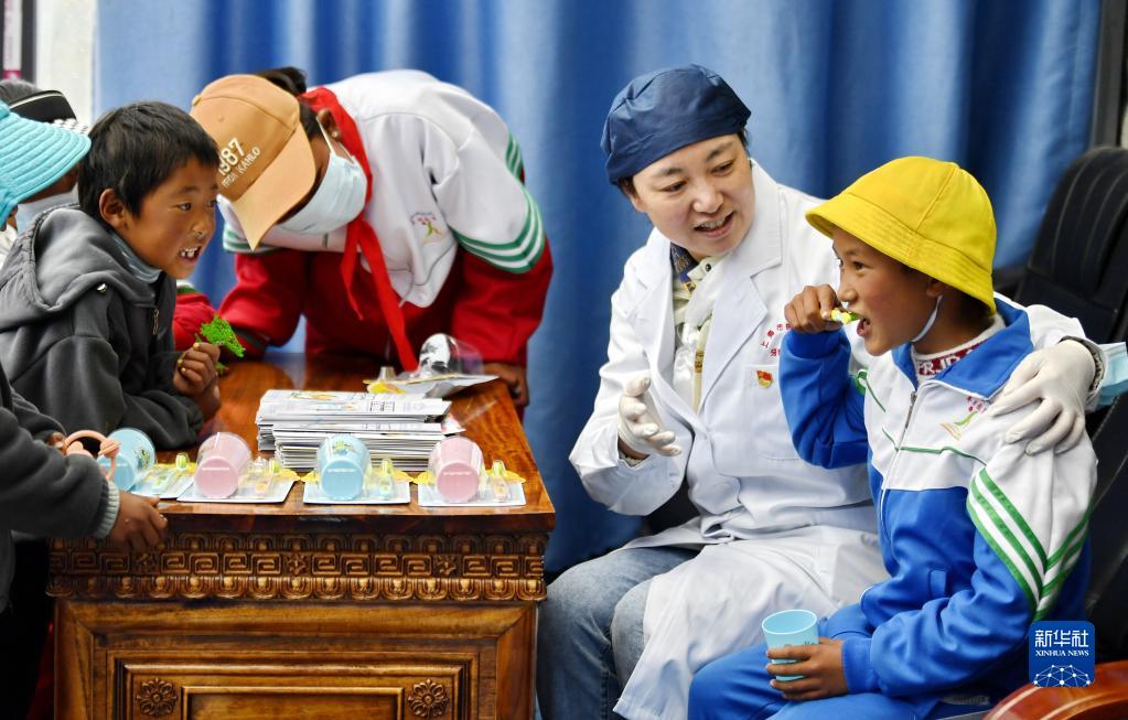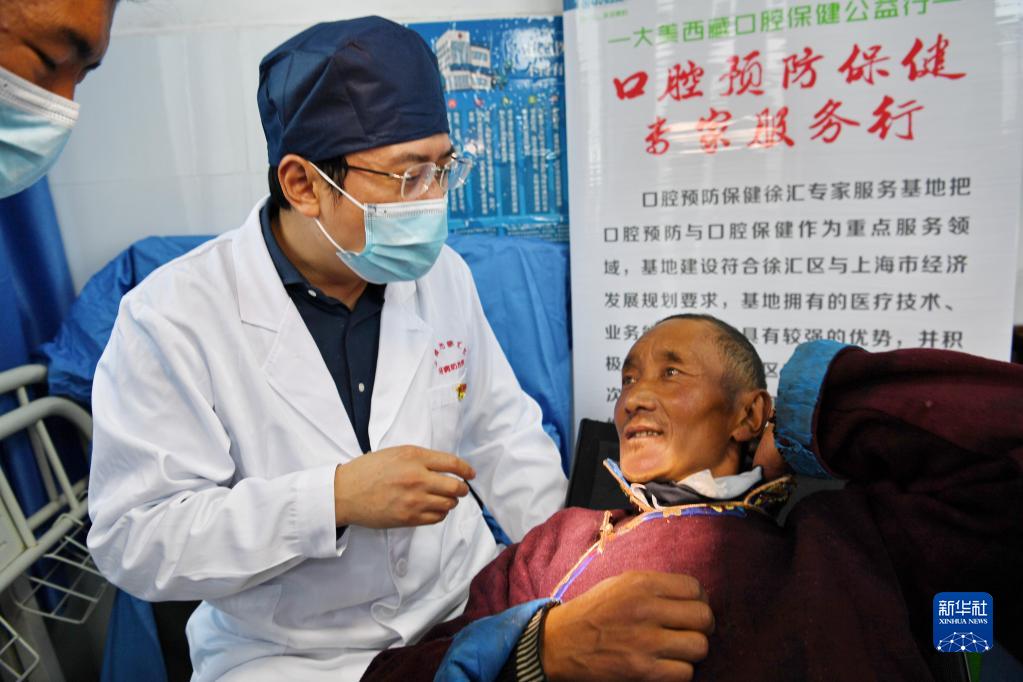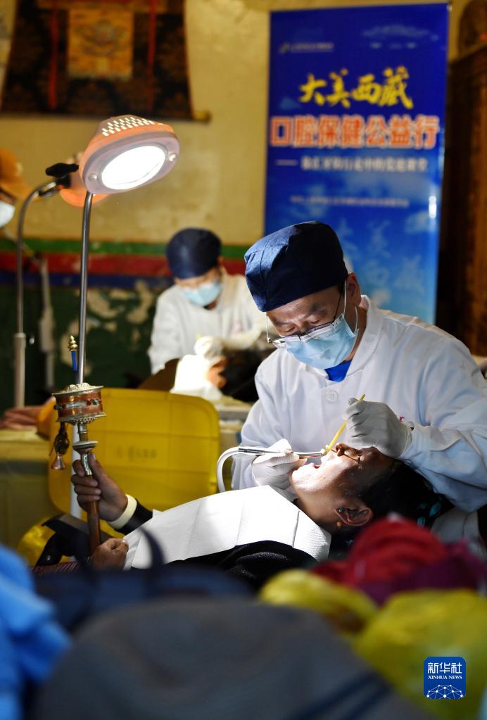 近日,上海市徐匯區(qū)牙病防治所的醫(yī)務(wù)工作者來到西藏浪卡子縣普瑪江塘鄉(xiāng),為當(dāng)?shù)鼐用衿占翱谇槐=≈R并進(jìn)行義診服務(wù)。普瑪江塘鄉(xiāng)海拔5373米,是我國海拔最高的鄉(xiāng)。