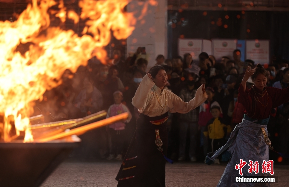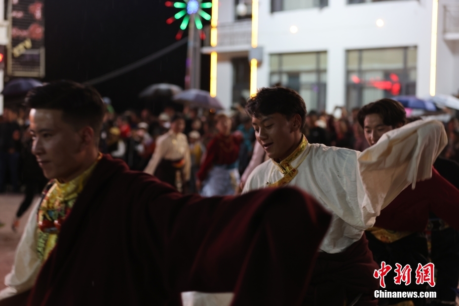 7月15日,西藏自治區(qū)昌都市貢覺縣阿旺綿羊文化商貿(mào)旅游節(jié)在當(dāng)?shù)嘏e行。當(dāng)?shù)孛癖娫陂_幕式前夜點(diǎn)起篝火,載歌載舞歡迎各地游客。