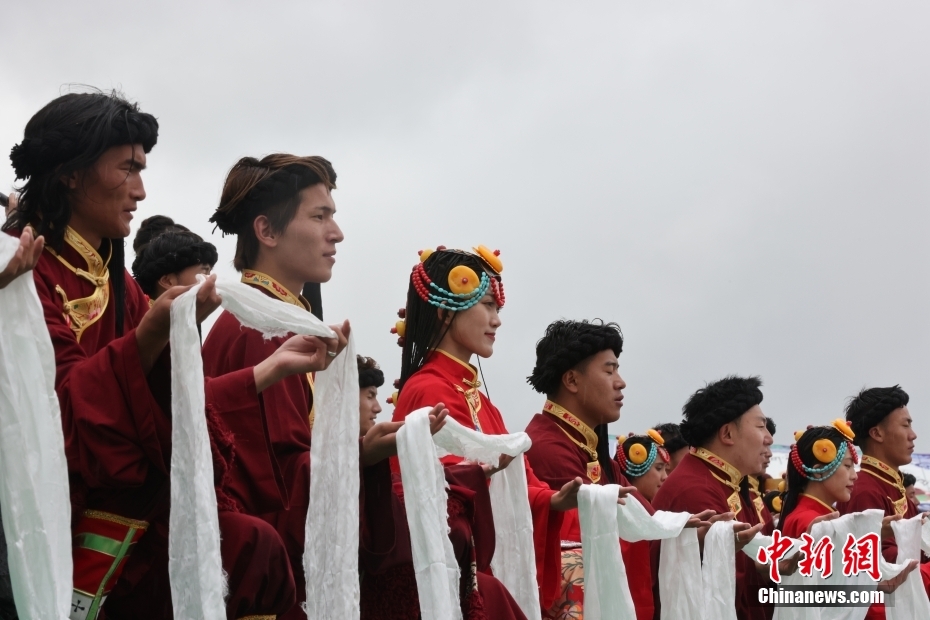 7月15日,西藏自治區(qū)昌都市貢覺縣阿旺綿羊文化商貿(mào)旅游節(jié)在當(dāng)?shù)嘏e行。當(dāng)?shù)孛癖娸d歌載舞歡迎各地游客。
