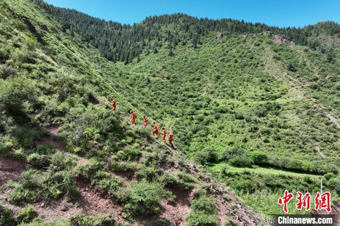 圖為消防員爬山尋找標記點。姚天銳 攝