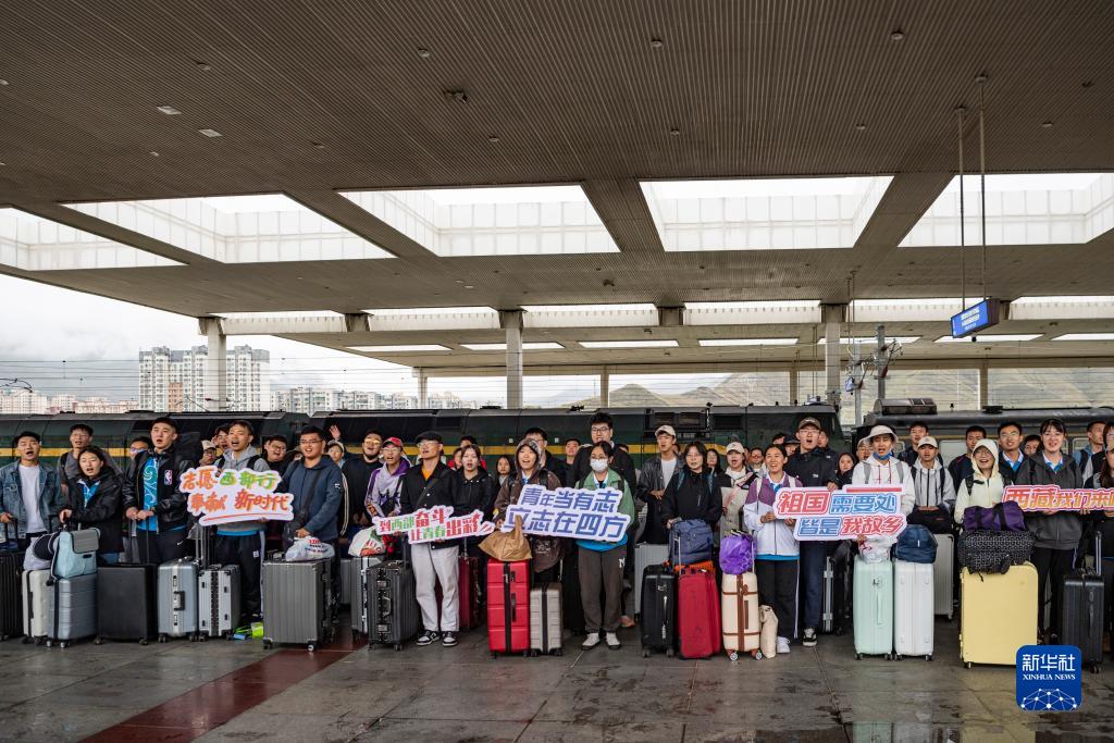 7月24日,在拉薩火車(chē)站,剛剛抵達(dá)拉薩的志愿者排隊(duì)前往乘車(chē)點(diǎn)。新華社記者 孫非 攝