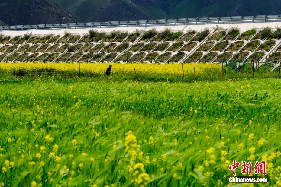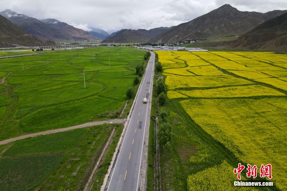 7月24日,西藏拉薩,國道109線一側(cè)的油菜花田。