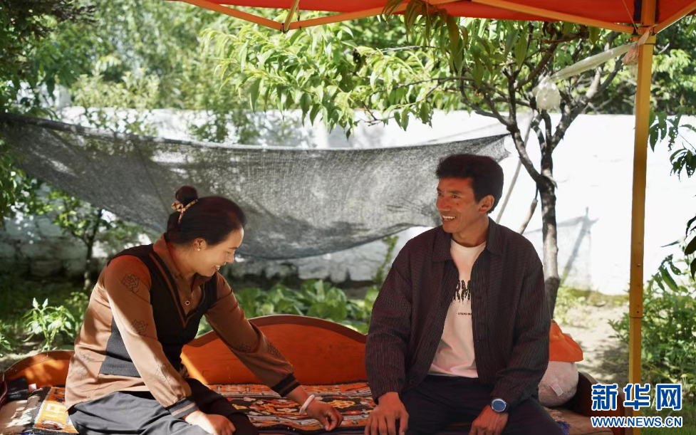 7月23日,達(dá)瓦堅(jiān)參和妻子在自家院子里 。新華網(wǎng)發(fā) 旦增晉扎 攝