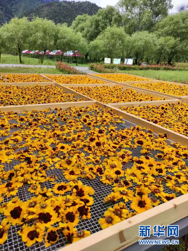 圖為工布花谷農(nóng)業(yè)觀光生態(tài)園內(nèi)正在晾曬的雪菊花茶。(工布花谷 李磊 供圖)