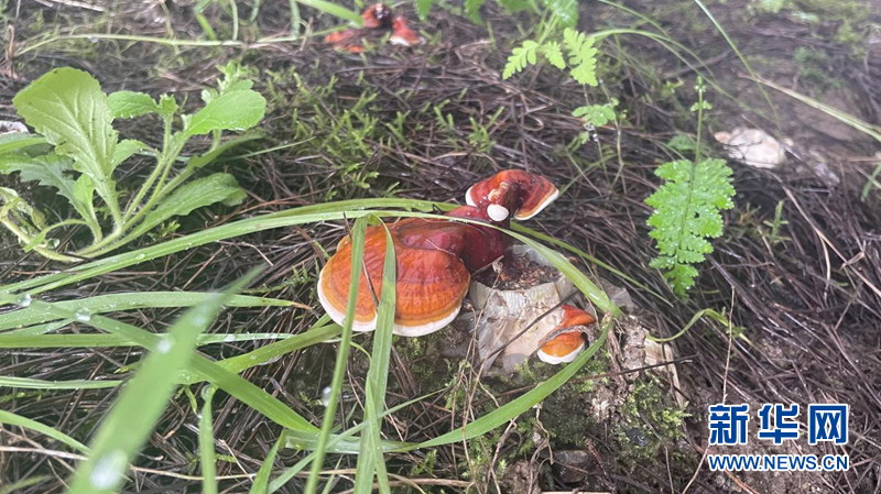 圖為紅太陽(yáng)科技示范家庭農(nóng)場(chǎng)的種植棚內(nèi),仿林下野生環(huán)境種植的靈芝。新華網(wǎng) 陳穎 攝