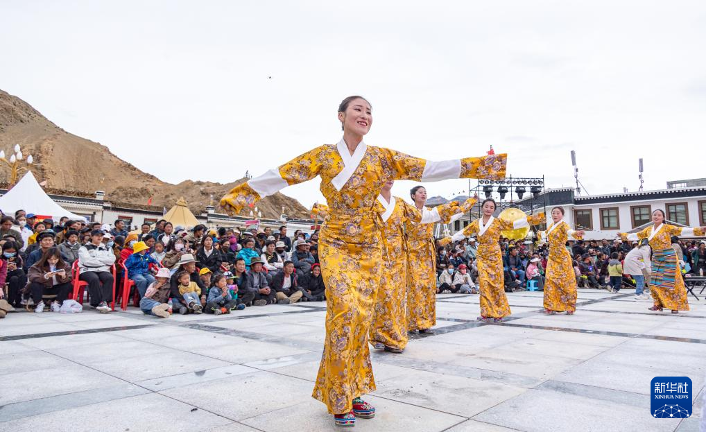 藏族演員表演鍋莊。 新華社記者 丁增尼達(dá) 攝