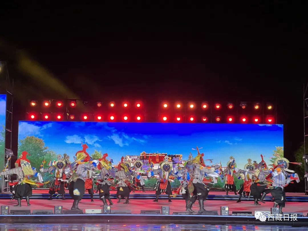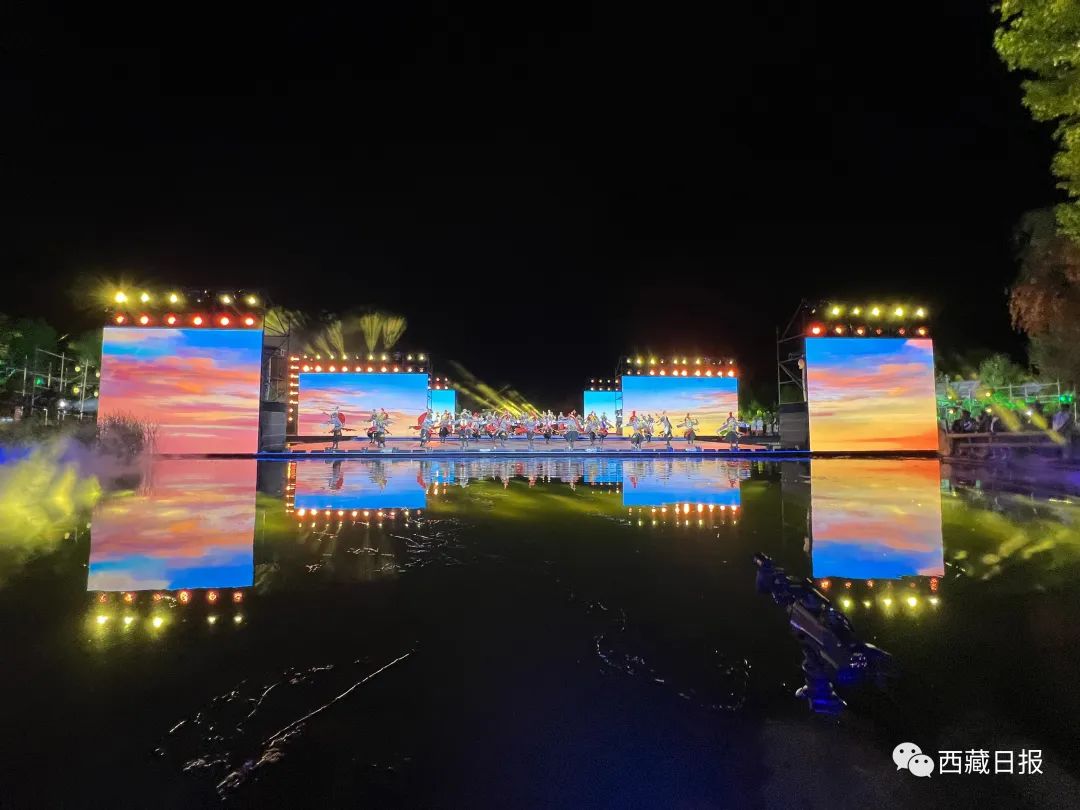 活動(dòng)在文藝演出《雪頓新韻》中拉開序幕,絢麗的燈光、精彩的文藝演出,為觀眾帶來了一場(chǎng)精美的視覺盛宴。開幕式由序篇、上篇、下篇、尾聲四個(gè)章節(jié)組成,整場(chǎng)文藝演出融合歌曲、舞蹈、藏戲、京劇、昆曲、街舞等元素,并以半實(shí)景的舞臺(tái)藝術(shù)形式上演《百年雪頓》等節(jié)目,在線上線下呈現(xiàn)一臺(tái)傳統(tǒng)與現(xiàn)代交相輝映、傳承與創(chuàng)新和諧相融、歷史與未來一脈相承的文藝盛宴。